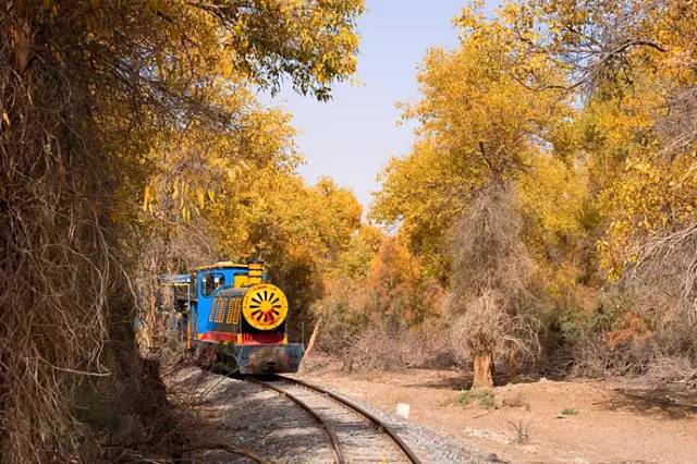 在輪臺(tái)塔里木胡楊林森林公園,除了感受金色胡楊的堅(jiān)毅頑強(qiáng)之外,還能體驗(yàn)到塞外壯闊攝人的雄壯之情,更可以乘坐復(fù)古觀光小火車,穿行在無(wú)邊無(wú)際的金色海洋中,一覽胡楊林、紅柳叢、蘆葦蕩、恰陽(yáng)河、林中湖等美景,盡情飽覽美如幻境的迷人景致。